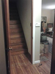 Wooden Stairs With Painted Stripes Updating Interior Design