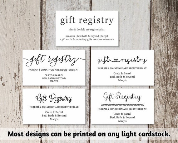 Wedding Registry Cards Printable Wedding Gift Registry